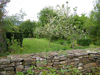 - Devant le mur du verger: Un pommier ancien où il fait bon dresser la table l’été, et un grand parterre